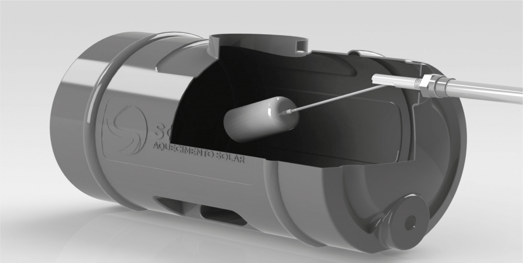 EEl mini tanque de agua es el encargado de recibir el agua del suministro y romper la presión a través de una válvula tipo flotador, por lo que que la presión esté dentro de lo especificado para el sistema de calefacción SOLARKIT solar. Las especificaciones del mini tanque de agua son: